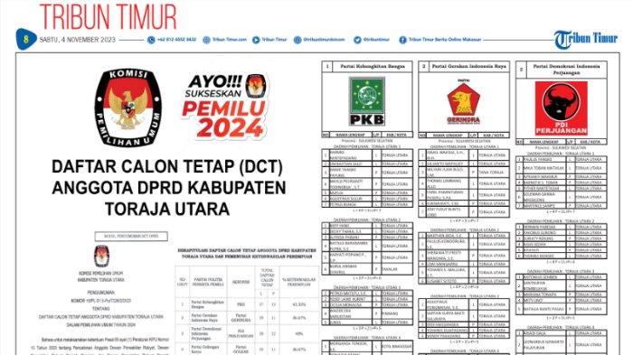 TRIBUN-TIMUR.COM - Komisi Pemilihan Umum (KPU) Toraja Utara telah menetapkan Daftar Calon Tetap (DCT) angggota DPRD Toraja Utara pada Pemilu 2024.
