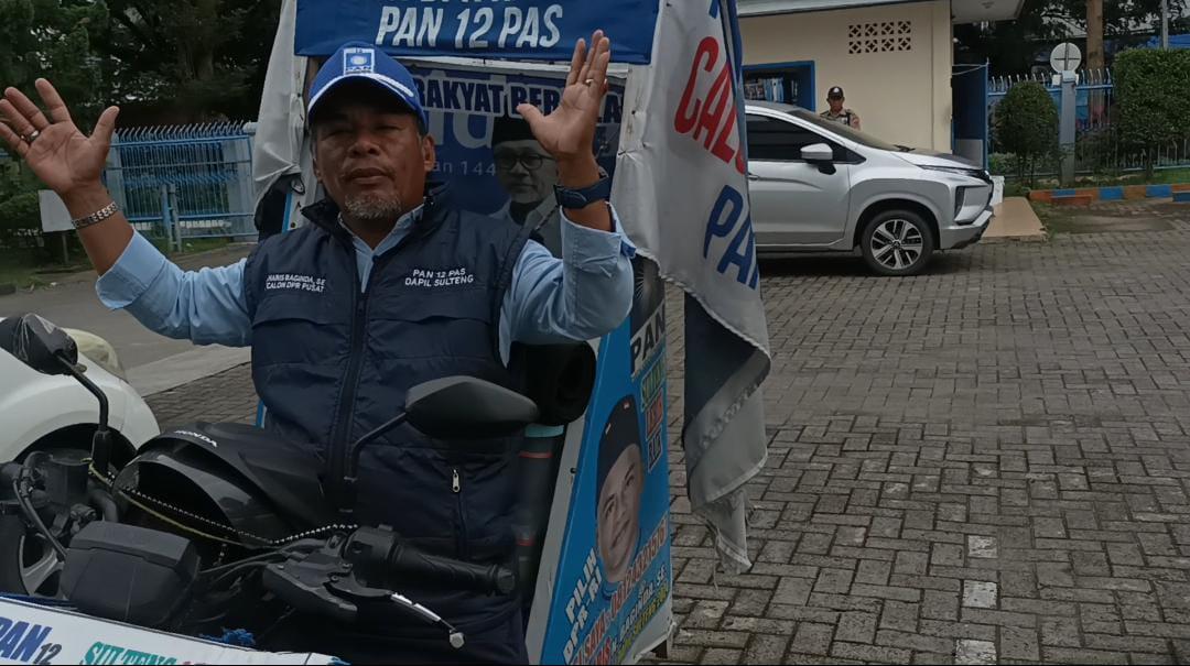 “katanya saya ini caleg DPR. Caleg nasional itu naik mobil, bukan pakai motor,” ujar Haris, mengemukakan pertanyaan warga yang ditemuinya di sepanjang rute ‘Safari Politik”-nya.