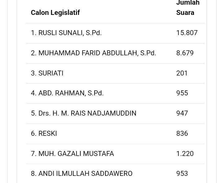 Ketua DPRD Luwu ini mendulang 15.807 suara.
