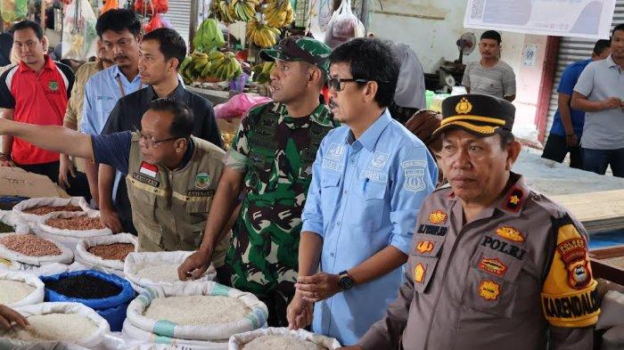 Sekretaris Daerah Kabupaten Pinrang Andi Calo Kerrang bersama unsur Forkopimda melakukan operasi pasar di Pasar Sentral Kabupaten Pinrang, Senin (11/3/2024).