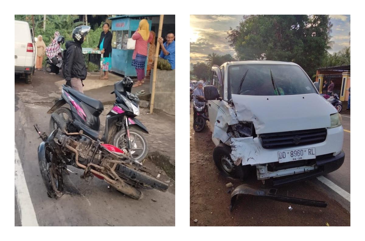 Oleh polisi, kecelakaan maut melibatkan mobil Suzuki APV berwarna putih DD 8960 RL bertabrakan sepeda motor protolan atau kondisi fisik tidak lengkap.