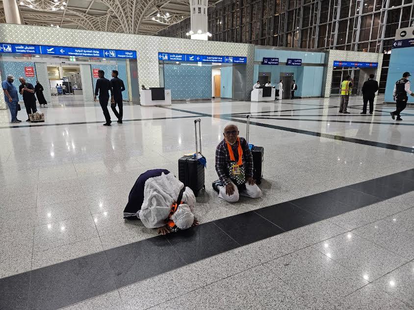 Saat menginjakkan kaki di tanah suci, hampir keseluruhan jemaah haji melakukan sujud syukur dengan mata berkaca-kaca.