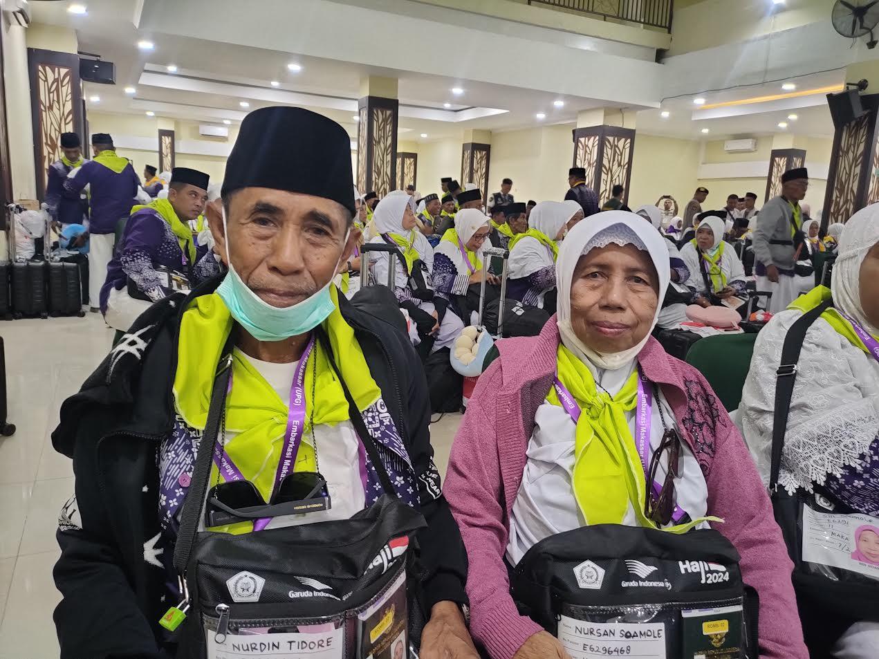 TRIBUN-TIMUR.COM, MAKASSAR - Pasangan suami istri (pasutri) jemaah calon haji (JCH) kloter 11 Embarkasi Makassar asal Maluku Utara membagikan ceritanya dapat berangkat haji.