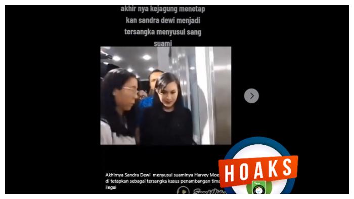 Narasi bahwa Sandra Dewi telah ditetapkan menjadi tersangka dalam kasus dugaan korupsi penambangan ilegal di wilayah IUP PT Timah Tbk tahun 2015-2022 tidak benar atau hoaks.