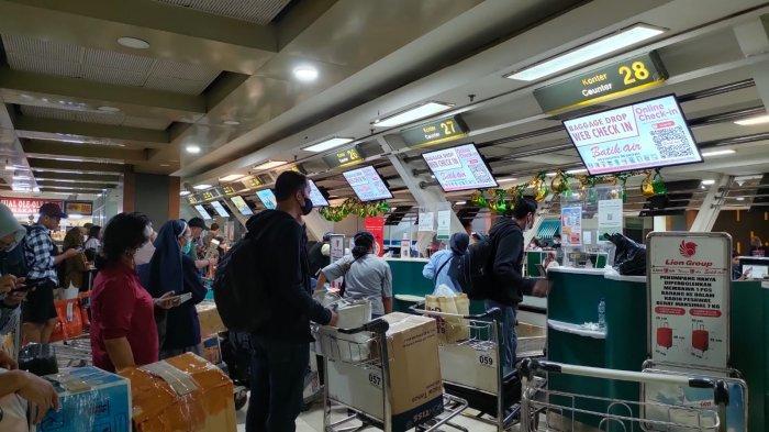 Antrean juga cukup panjang di konter Check-in oleh penumpang yang tengah melakukan validasi dokumen keberangkatan.