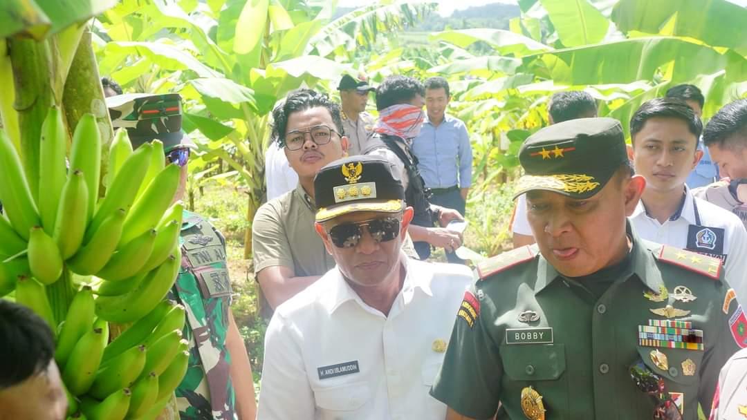 Kapolda meninjau kebun pisang cavendish bersama dengan Pangdam XIV/Hasanuddin, Mayjen TNI Bobby Rinal Makmun; Panglima Divisi Infanteri 3/Kostrad, Mayjen TNI Bangun Nawoko; dan Danlantamal VI Makassar Brigjen TNI (Marinir) Andi Rahmat.