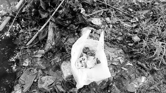 Setelah itu dibuka, isi kantongan tersebut ternyata merupakan janin bayi terbungkus pembalut.