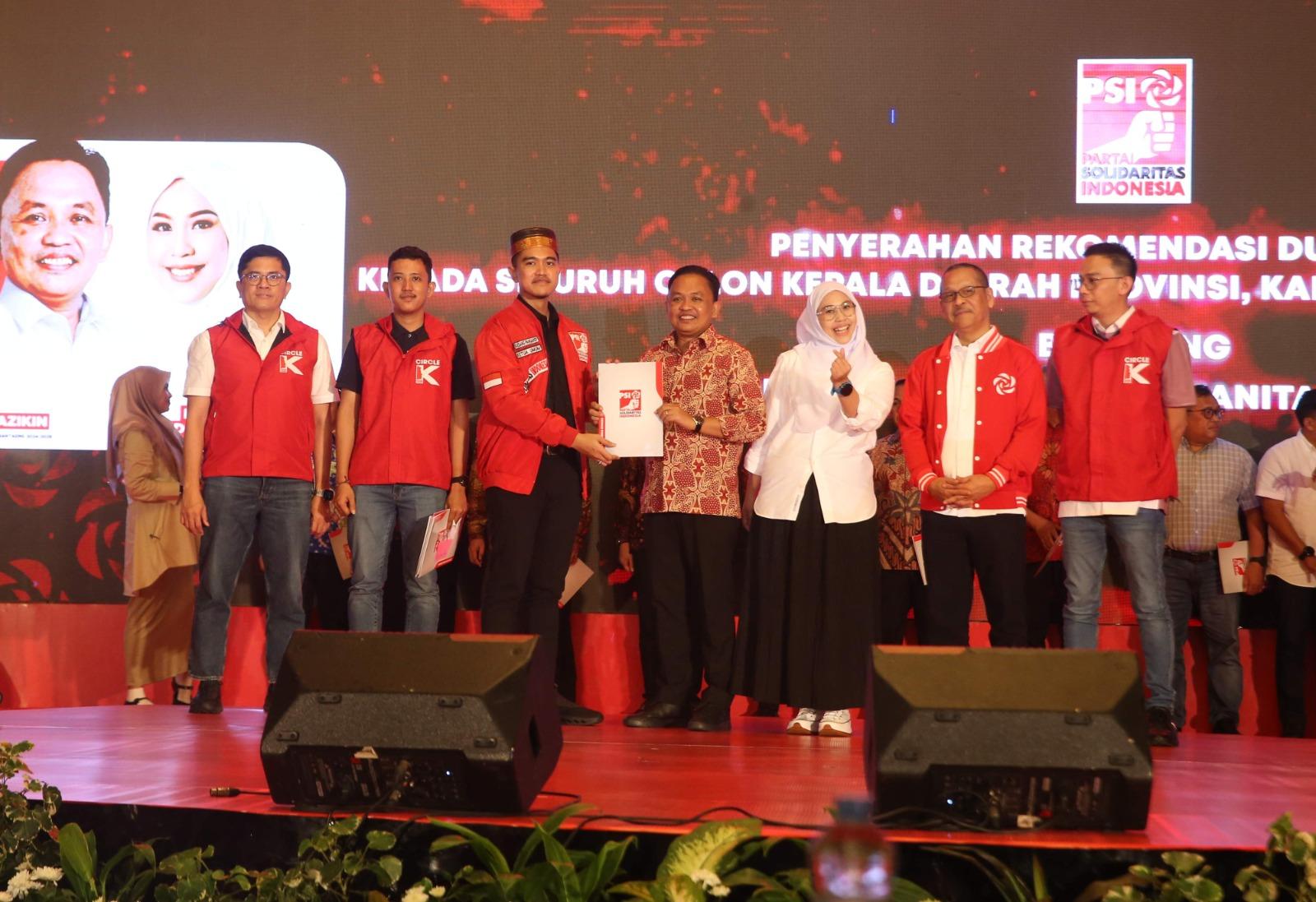 TRIBUN-TIMUR.COM - Partai Solidaritas Indonesia (PSI) secara resmi memberikan dukungan kepada calon Bupati Bantaeng Ilham Azikin dan calon wakil bupati Kanita Kahfi.