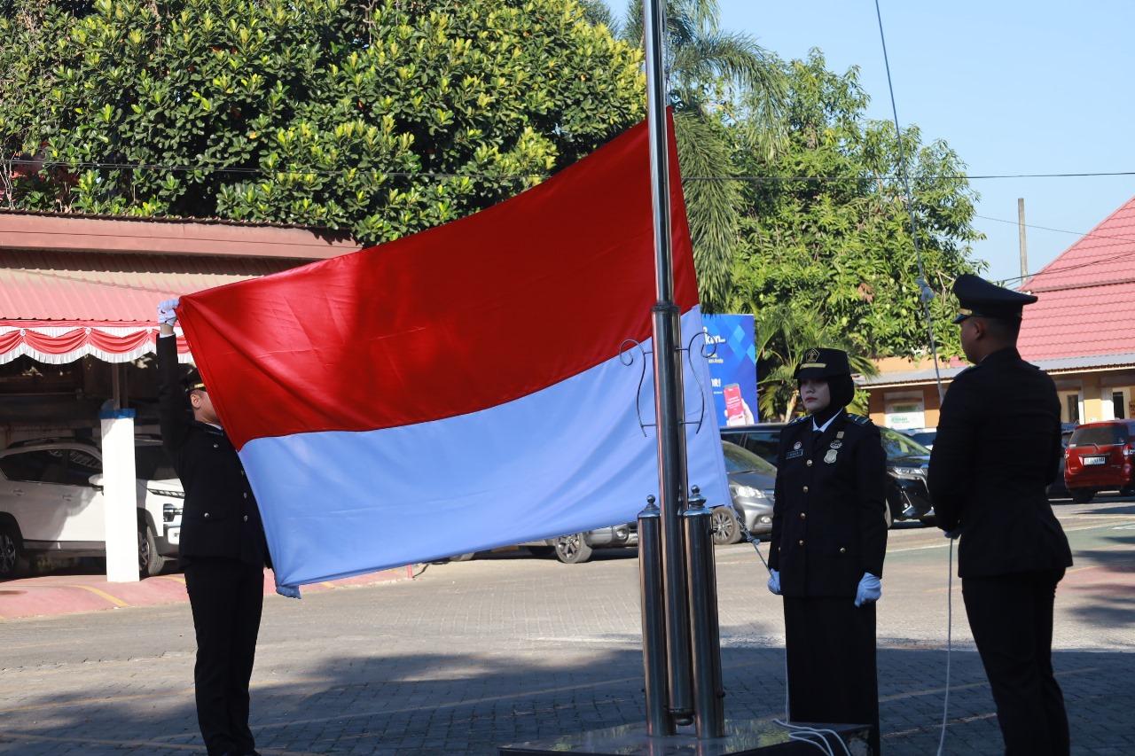 Kantor Imigrasi Kelas I Khusus TPI Makassar menggelar upacara bendera dan berbagai lomba di halaman kantor.