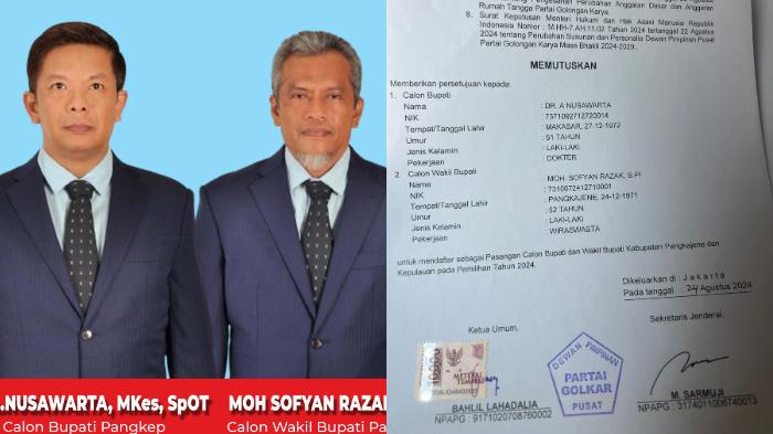 Golkar Terbitkan B1KWK Usung Andi Nusawarta-Sofyan Tantang Yusran Lalogau di Pilkada Pangkep 2024