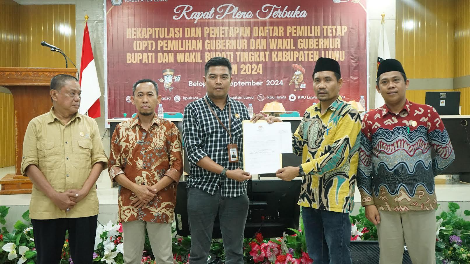 KPU Kabupaten Luwu, Sulawesi Selatan menetapkan Daftar Pemilih Tetap (DPT) Pilkada 2024 di Aula Bappeda, Kota Belopa.