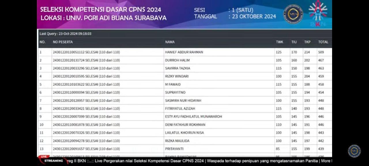 Plt. Kepala BKN, Haryomo Dwi Putranto, mengatakan skor SKD CPNS 2024 juga dapat dicek melalui layanan LIVE SCORE yang ada di kanal YouTube BKN.