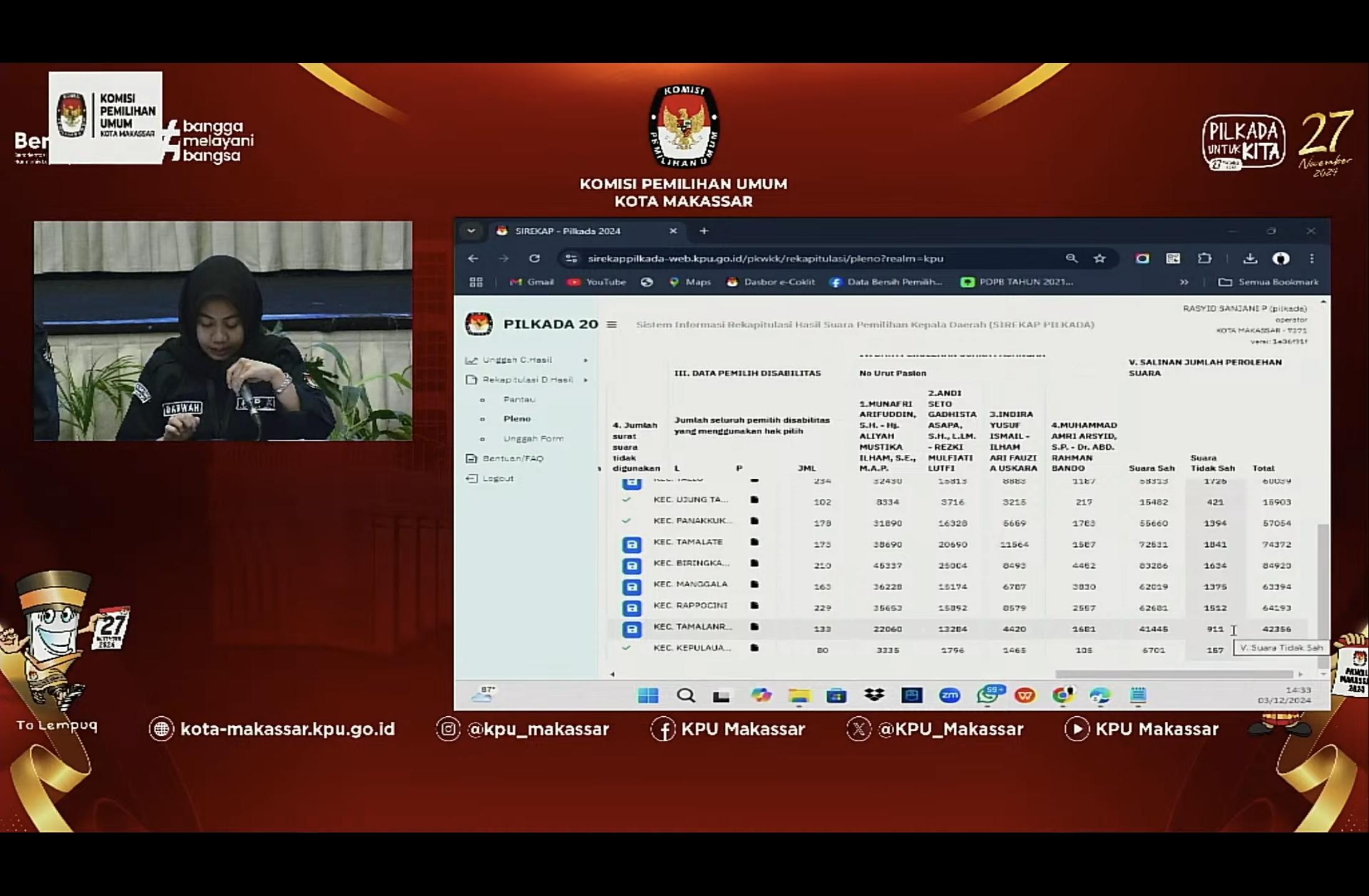 Hasil tersebut diumumkan sat rekapitulasi perhitungan suara tingkat Kota Makassar di Hotel Claro, Kota Makassar, pada Rabu (4/12/2024).