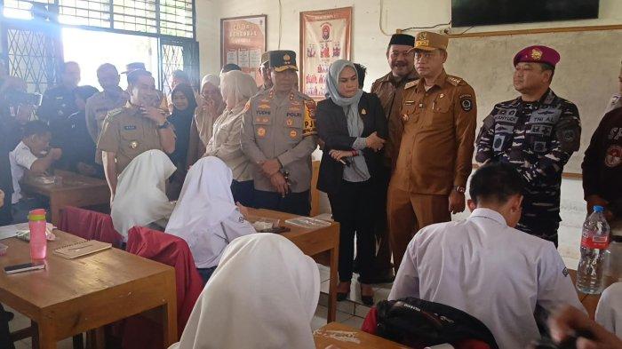 Saat pelajar menikmati makan bergizi gratis, Irjen Pol Yudhiawan, sekali-kali bertanya kepada siswa.