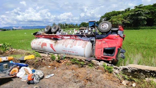 Tiga orang di dalam truk, yakni sopir, kernet, dan seorang bocah yang merupakan anak sopir, berhasil selamat meski mengalami luka.