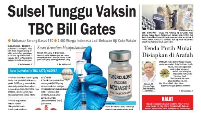TRIBUN-TIMUR.COM - Indonesia menjadi satu dari lima negara yang dipilih untuk berpartisipasi dalam uji klinis fase 3 vaksin TBC M72/AS01E. Vaksini ini dikembangkan yayasan milik Bill Gates.
