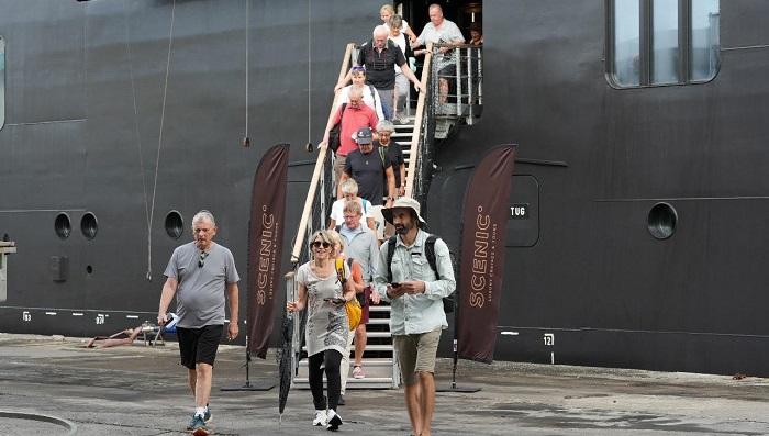 Kapal pesiar ini membawa 161 orang wisatawan mancanegara dan 180 orang kru kapal.