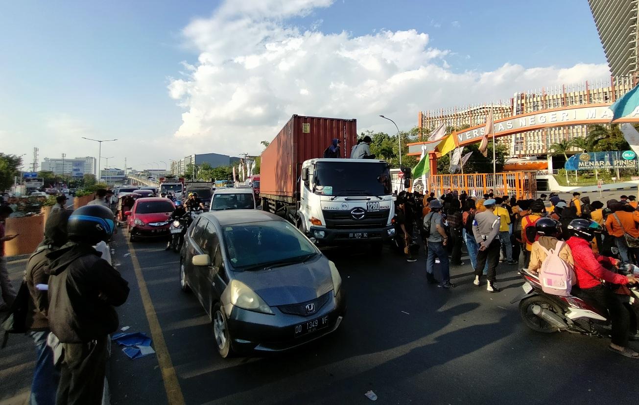 BREAKING NEWS: Demo Mahasiswa UNM Soal Dugaan Jual Beli Nilai Macetkan Jl AP Pettarani