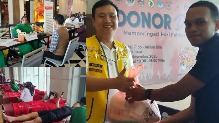 - Lions Club Makassar Phinisi menggelar donor darah di Mall Pipo, Makassar, Minggu (10/11/2025), bertepatan Hari Pahlawan.