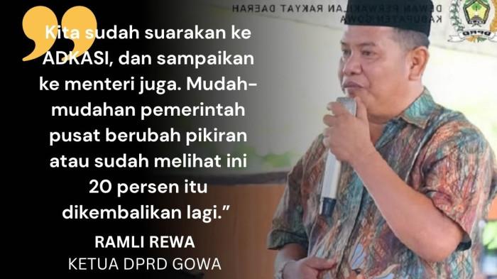 TRIBUN-TIMUR.COM- Ketua Dewan Perwakilan Rakyat Daerah (DPRD) Gowa, Ramli Rewa ikut geram atas pemotongan Dana Transfer Daerah (TKD).