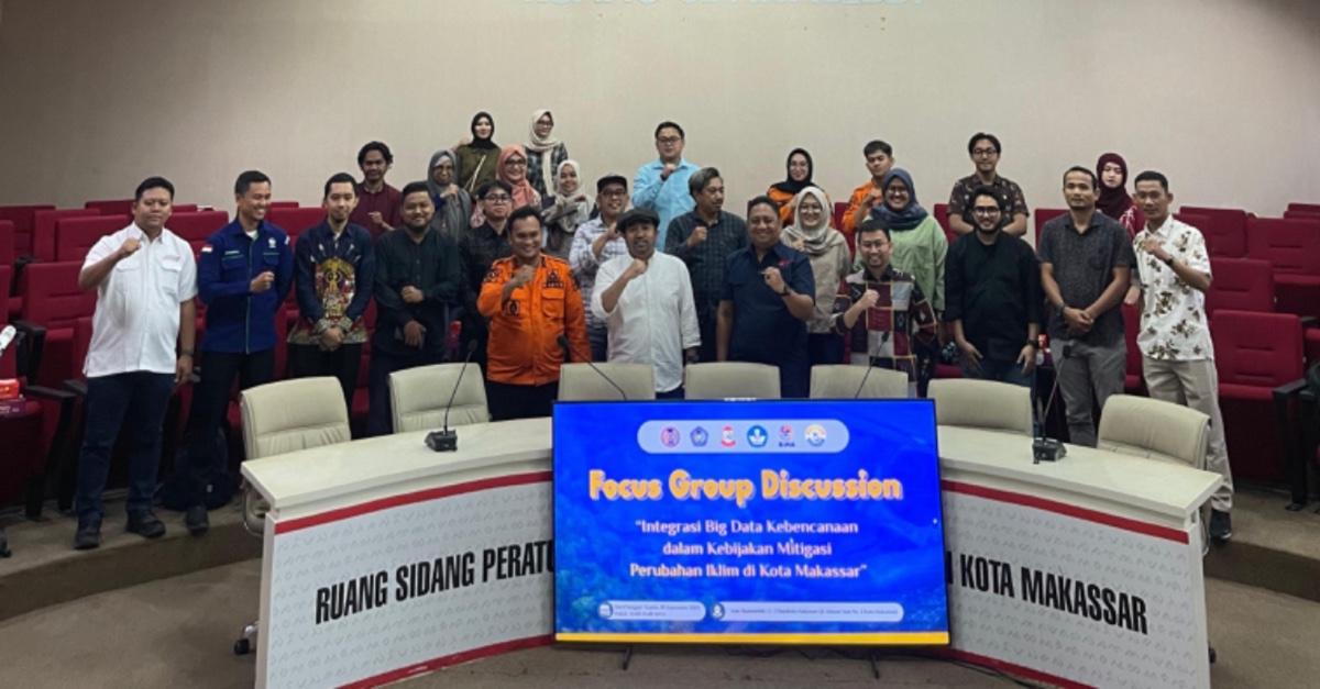 Diskusi mengusung tema "Integrasi Big Data Kebencanaan dalam Kebijakan Mitigasi Perubahan Iklim di Kota Makassar".