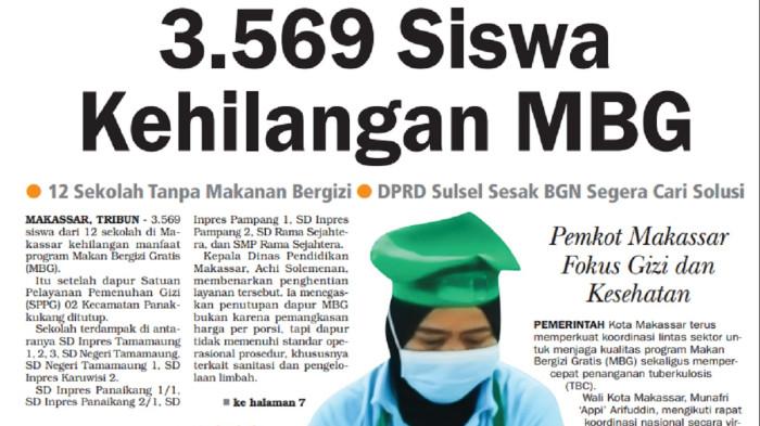 TRIBUN-TIMUR.COM - 3.569 siswa dari 12 sekolah di Makassar kehilangan manfaat program Makan Bergizi Gratis (MBG).