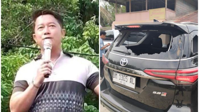 MOBIL KAPOLRES - Kolase Kapolres Kuansing AKBP R Ricky Pratidiningrat dan kondisi mobil usai dirusak penambang ilegal. Kaca mobil pribadi AKBP R Ricky Pratidiningrat pecah di bagian kaca belakang dan samping usai diserang pelaku tambang liar di Desa Pulau Bayur, Kecamatan Cerenti, Selasa (7/10/2025).