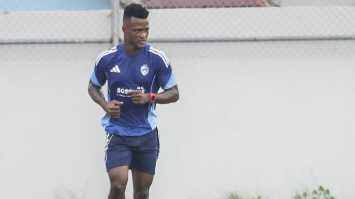 Abu Kamara masih latihan terpisah dengan skuad PSM Makassar di Stadion Kalegowa, Kabupaten Gowa, Senin (13/10/2025) sore