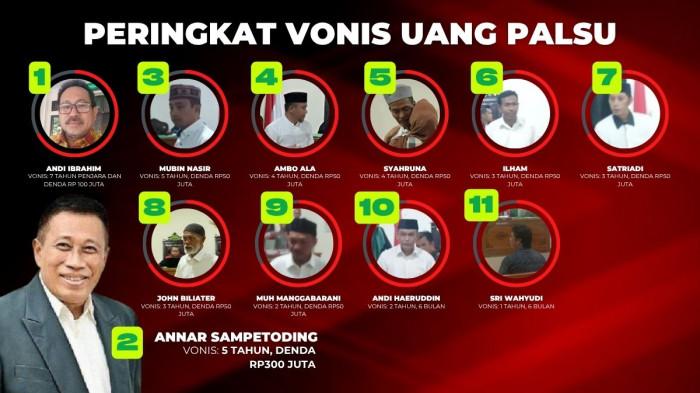 Peringkat Vonis 11 Terdakwa Uang Palsu, Andi Ibrahim Terberat Disusul Annar Sampetoding-Mubin