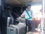 Sebelum peninjauan rel kereta api, Budi Karya Sumadi secara langsung melakukan uji coba gerbong kereta api saat tiba di lokasi.
