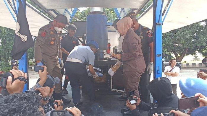 Pemusnahan berlangsung di halaman parkir belakang, Mapolda Sulsel, Jl Perintis Kemerdekaan, Makassar, Kamis (28/12/2023) pagi.