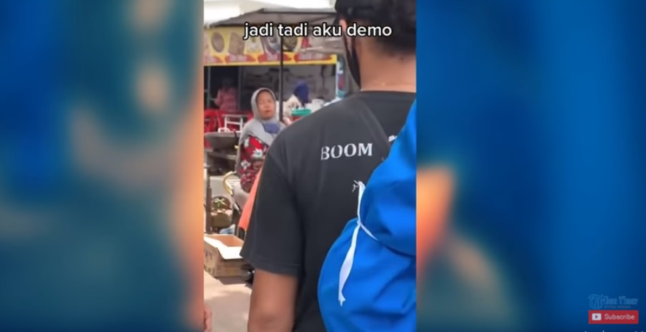 Viral video penjual makanan memberi gorengan pada mahasiswi yang melakukan aksi demo tolak Undang-undang (UU) Cipta Kerja.