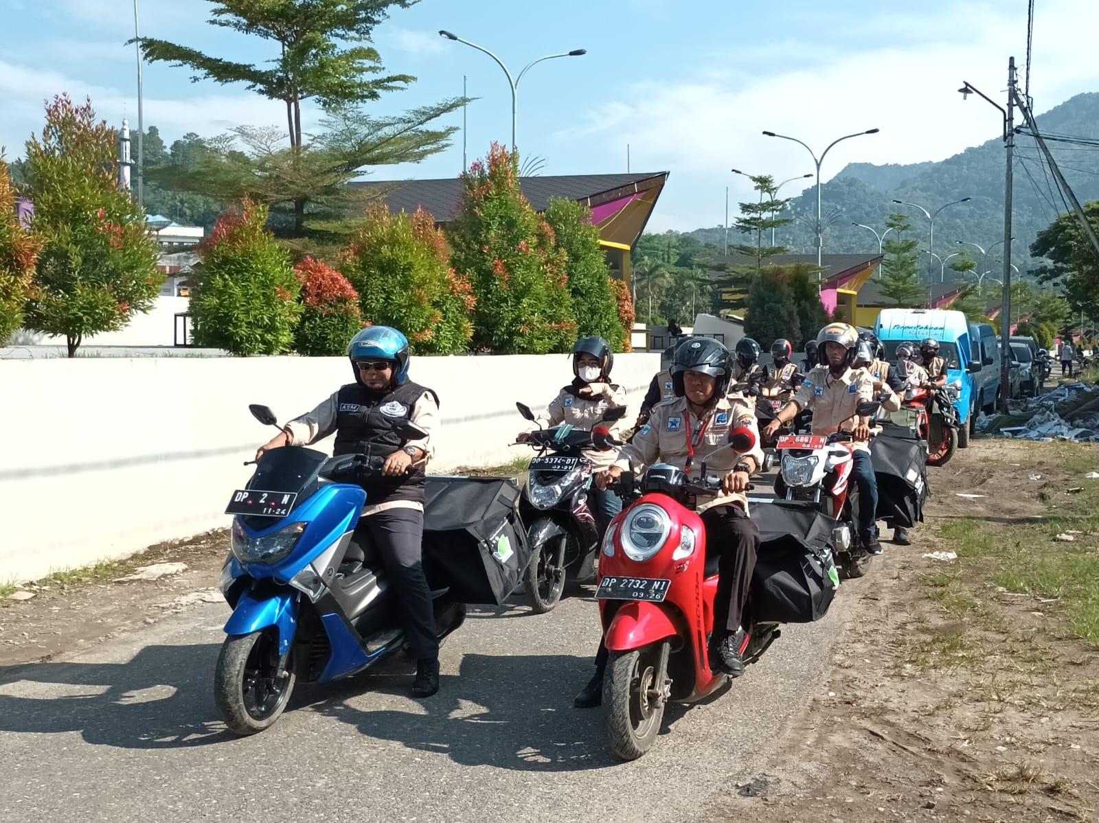 Asman Bareng Kadis Perpustakaan Enrekang Naik Motor Bagi-bagi Buku di Sekolah
