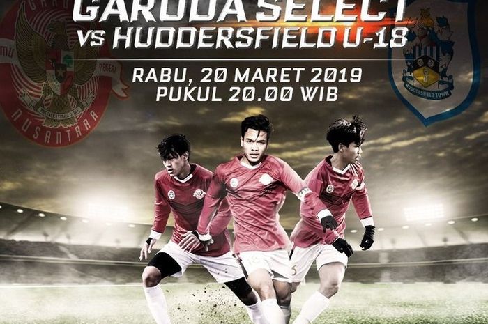 Live streaming Garuda Select vs Huddersfield U-18 tersaji pada Rabu (20/3/2019) pukul 20.00 WIB.