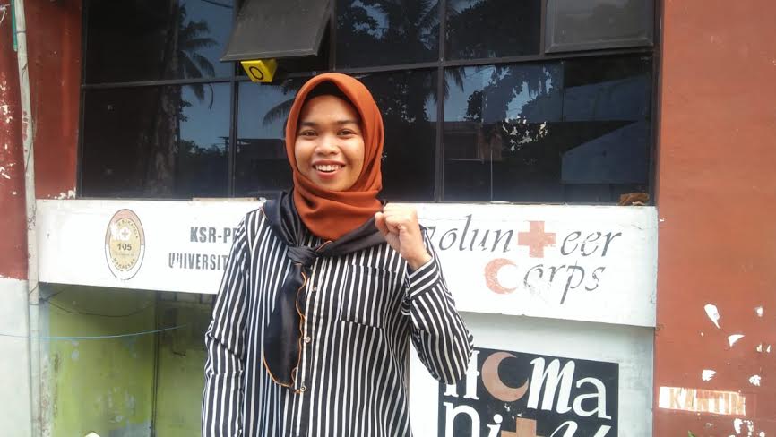 anggota UKM Korps Suka Rela Universitas Bosowa Nur Vita (22) untuk menjadi relawan.