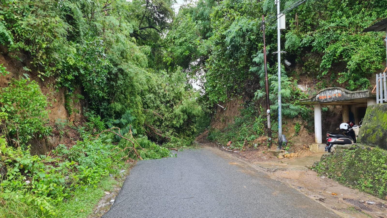 Kejadian tersebut juga mengakibatkan pohon tumbang serta menutup seluruh badan jalan.