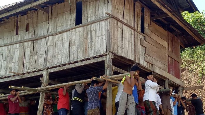 Patut Dicontoh, Warga Desa Karueng Enrekang Gotong Royong Pindahkan Rumah Warga