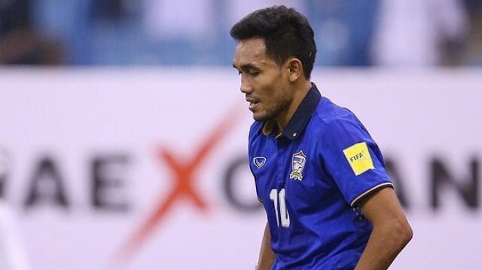 Striker Thailand, Teerasil Dangda, yang menjadi kapten tim, tidak berdaya menembus pertahanan Jepang