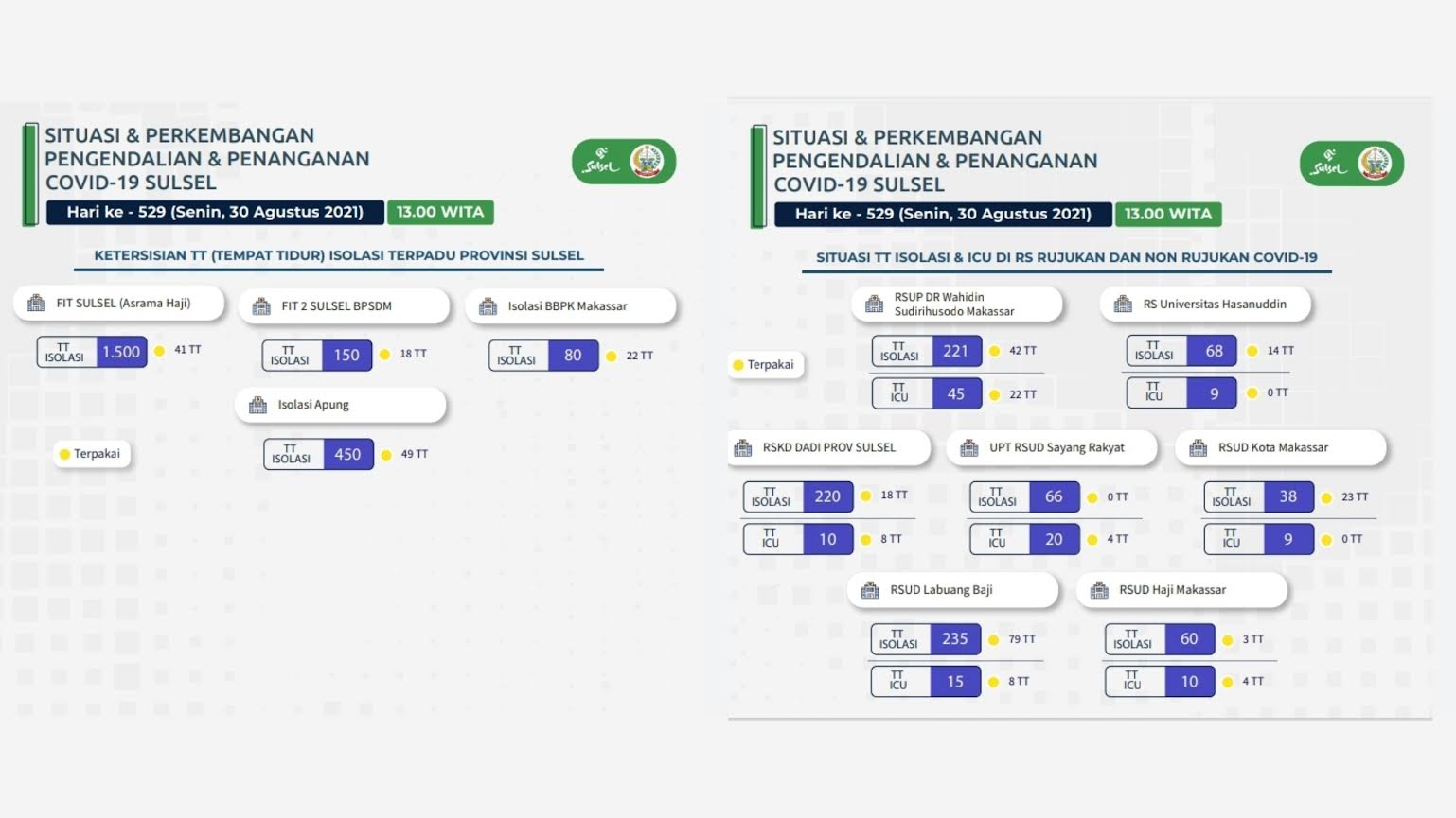 Untuk di Fasilitas Isolasi Terintegrasi (FIT) Sulsel di Asrama Haji Sudiang dari 1.500 tempat tidur (TT) yang disediakan hanya 41 TT yang terisi.