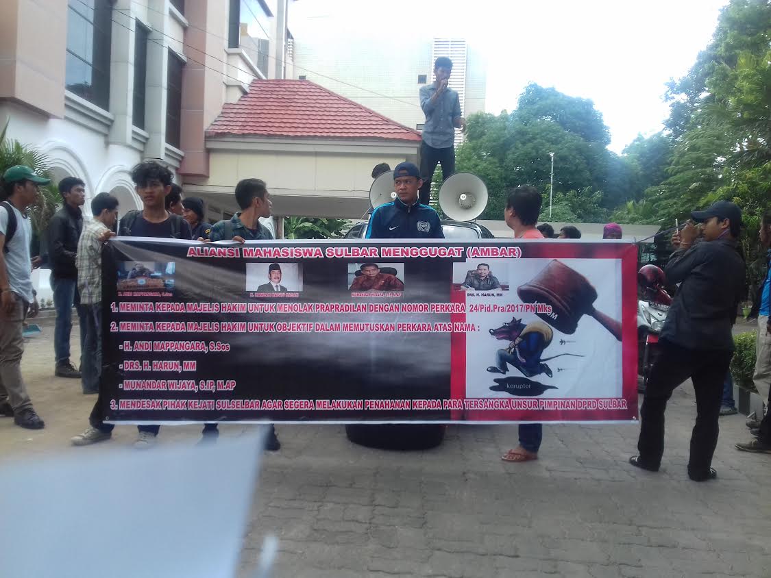 VIDEO: Mahasiswa Desak Pengadilan Tolak Gugatan Prapedilan Tersangka Korupsi DPRD Sulbar