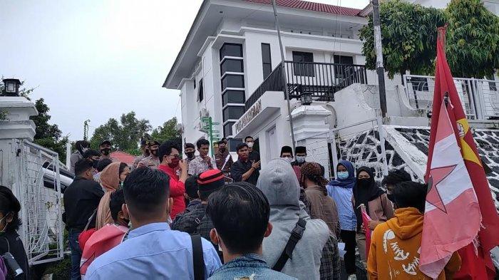 Puluhan mahasiswa berunjuk rasa di depan gedung Kejaksaan Negeri Majene, Selasa (22/12/2020).