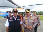 Bahtiar Baharuddin dan Irjen Pol Andi Rian R Djajadi menaiki helikopter milik Polda Sulsel menyisir sejumlah titik bencana di Luwu.