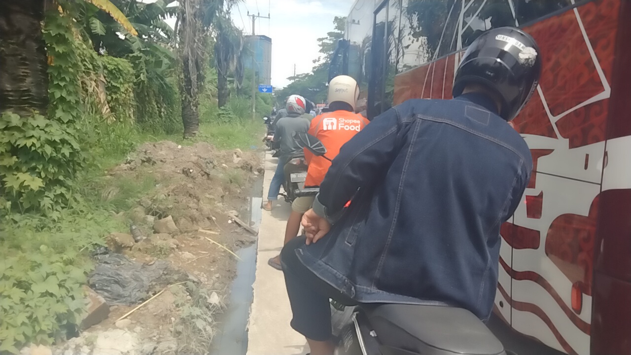 Kemacetan panjang terjadi di Jl Metro Tanjung Bunga, Kota Makassar, Jumat (31/12/2021) siang. Terpantau pukul 11.20 Wita.