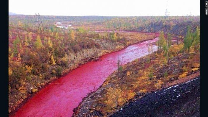 Air Sungai Mendadak Jadi Merah Darah, Warga Kaget! Pertanda Apa? Warga setempat dikejutkan dengan perubahan warna air di sungai menjadi merah darah.