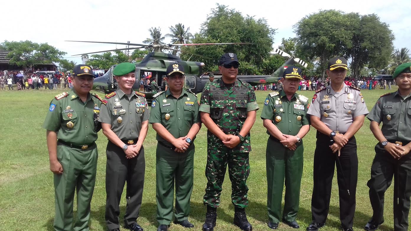 Perwira TNI nomor satu di Sulawesi tersebut datang dengan mengendarai helikopter dan mendarat di lapangan Dusun Tippulu.