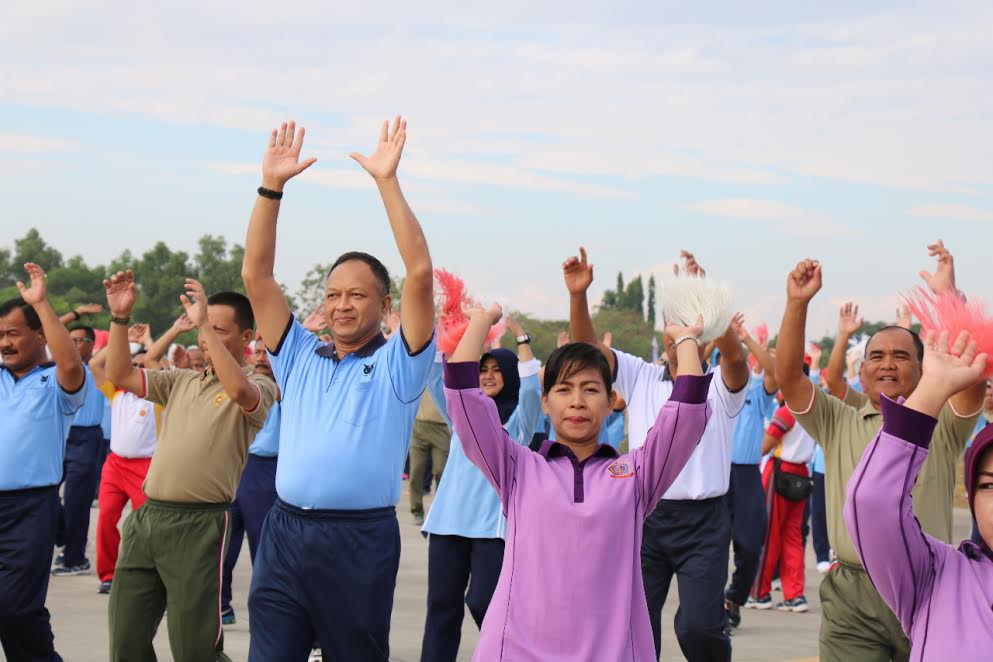 Marsda TNI Fadjar Prasetyo turut menghadiri acara Pemecahan Rekor Muri Tarian Gemu Famire, di Lanud Sultan Hasanuddin, Selasa (4/9/2018).