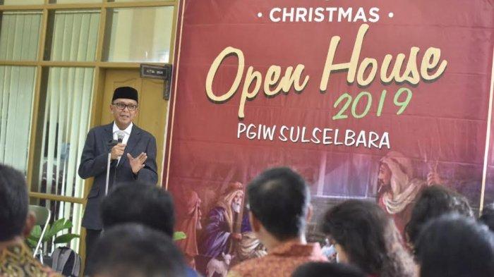 Nurdin Abdullah saat menghadiri Open House Persekutuan Gereja-gereja Indonesia (PGI) Wilayah Sulawesi Selatan, Barat dan Tenggara (Sulselbartra).