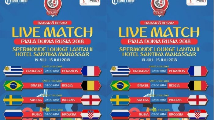 Program nonton Piala Dunia 2018 bertajuk "Pesta Bola di Sini!" diselenggarakan Tribun Timur didukung Djarum Super Soccer, & Hotel Santika Makassar