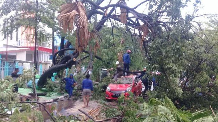 1 Mobil Tertimpa Pohon Tumbang di Depan RS Labuang Baji, 4 Penumpang Selamat