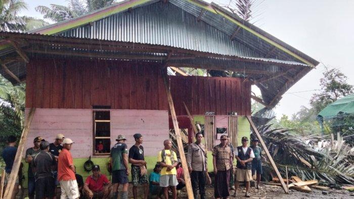 Pohon tumbang dari samping rumah menghantam korban yang sementara tidur di bagian depan rumah.